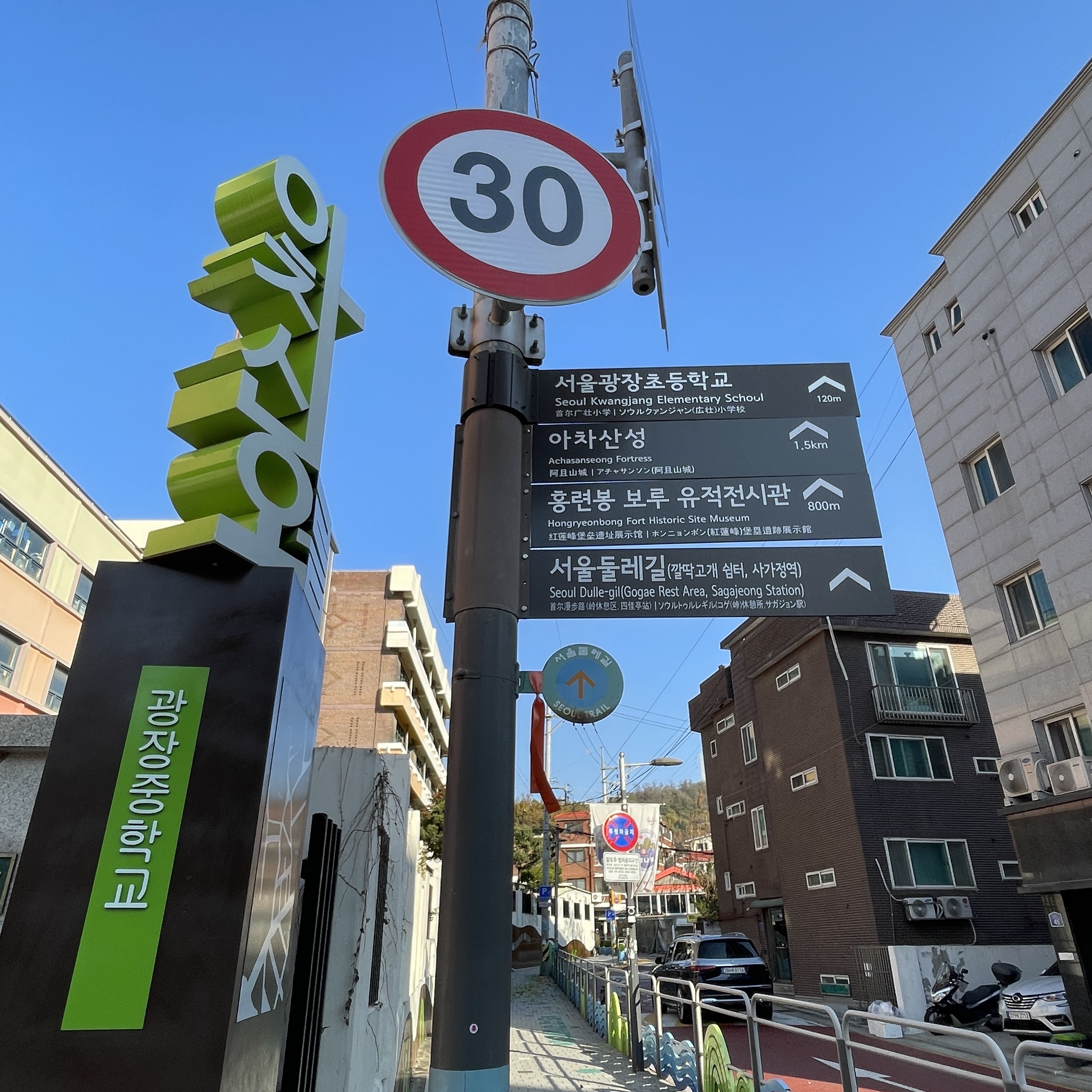 광장중학교, 광장초등학교를 지나