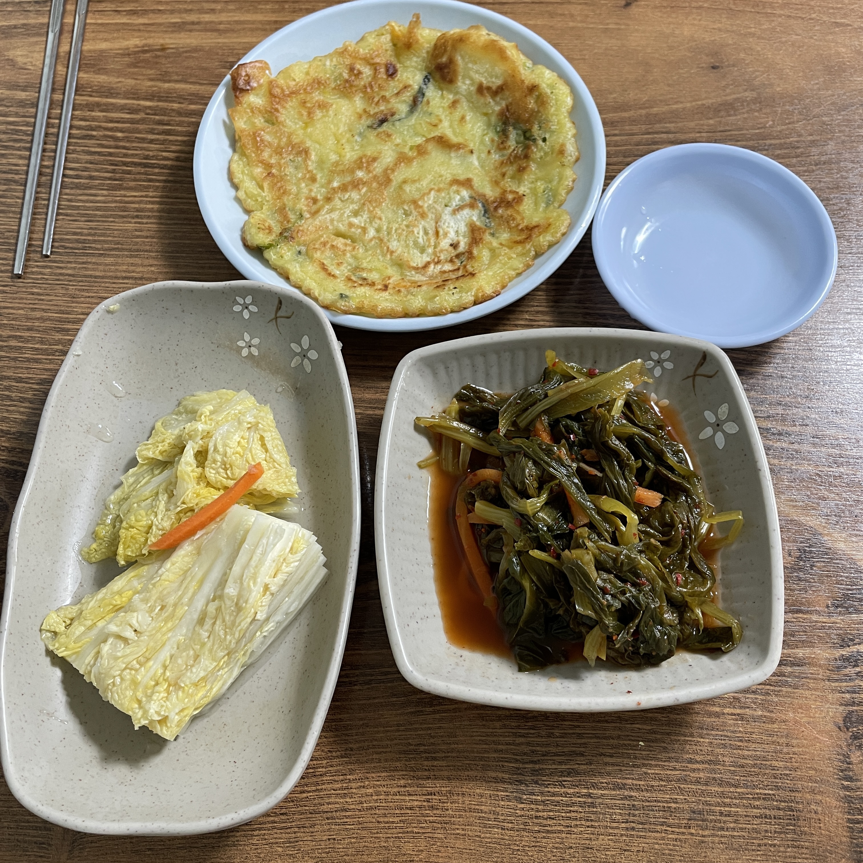 기본적으로 백김치, 열무김치, 미니전 나와요.