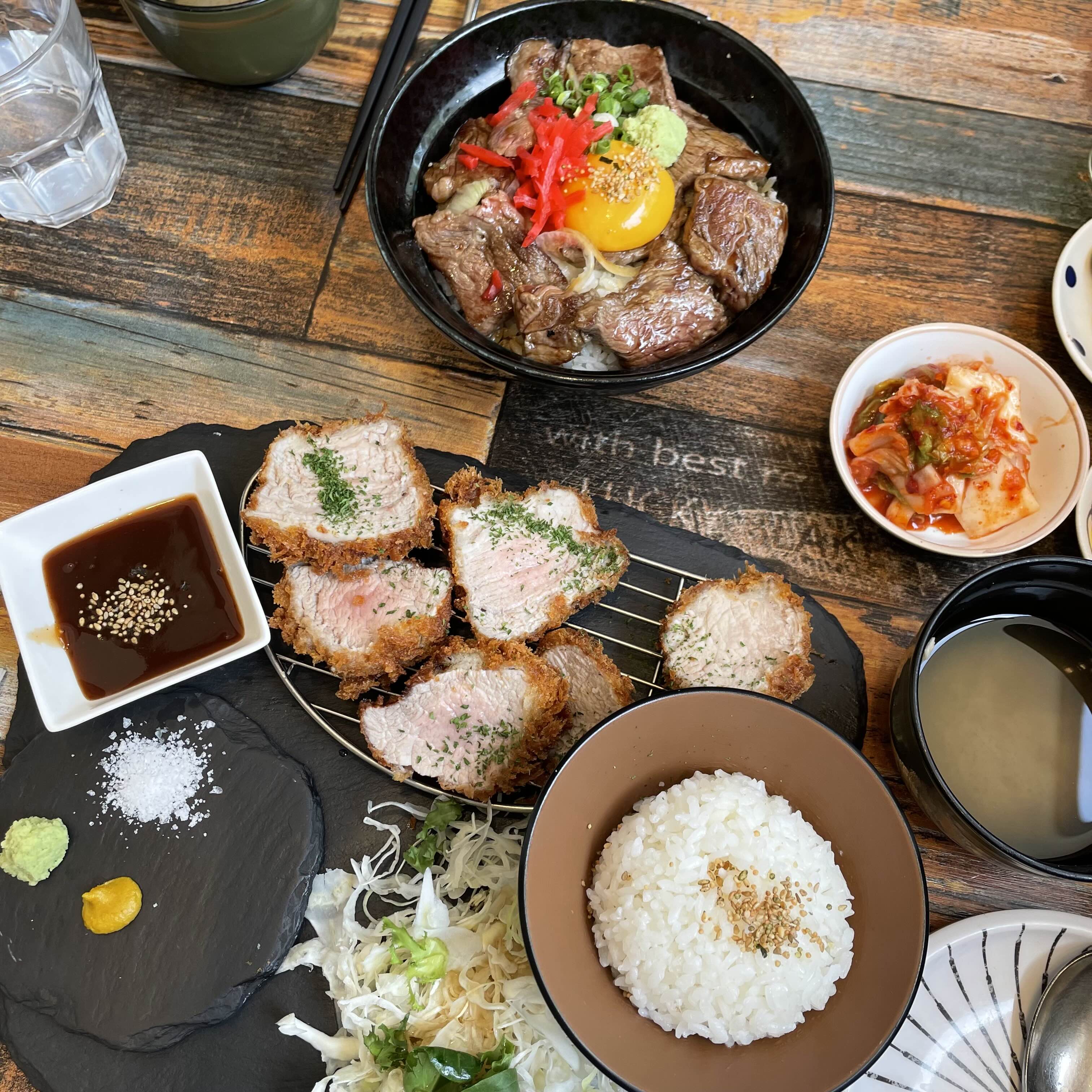 안심가츠정식과 야키니쿠동을 주문했어요.